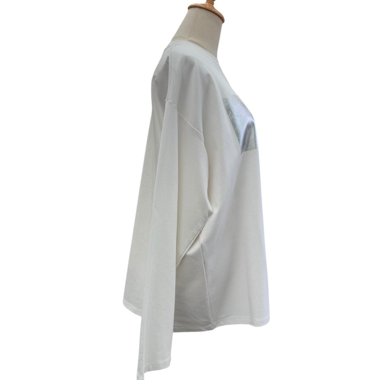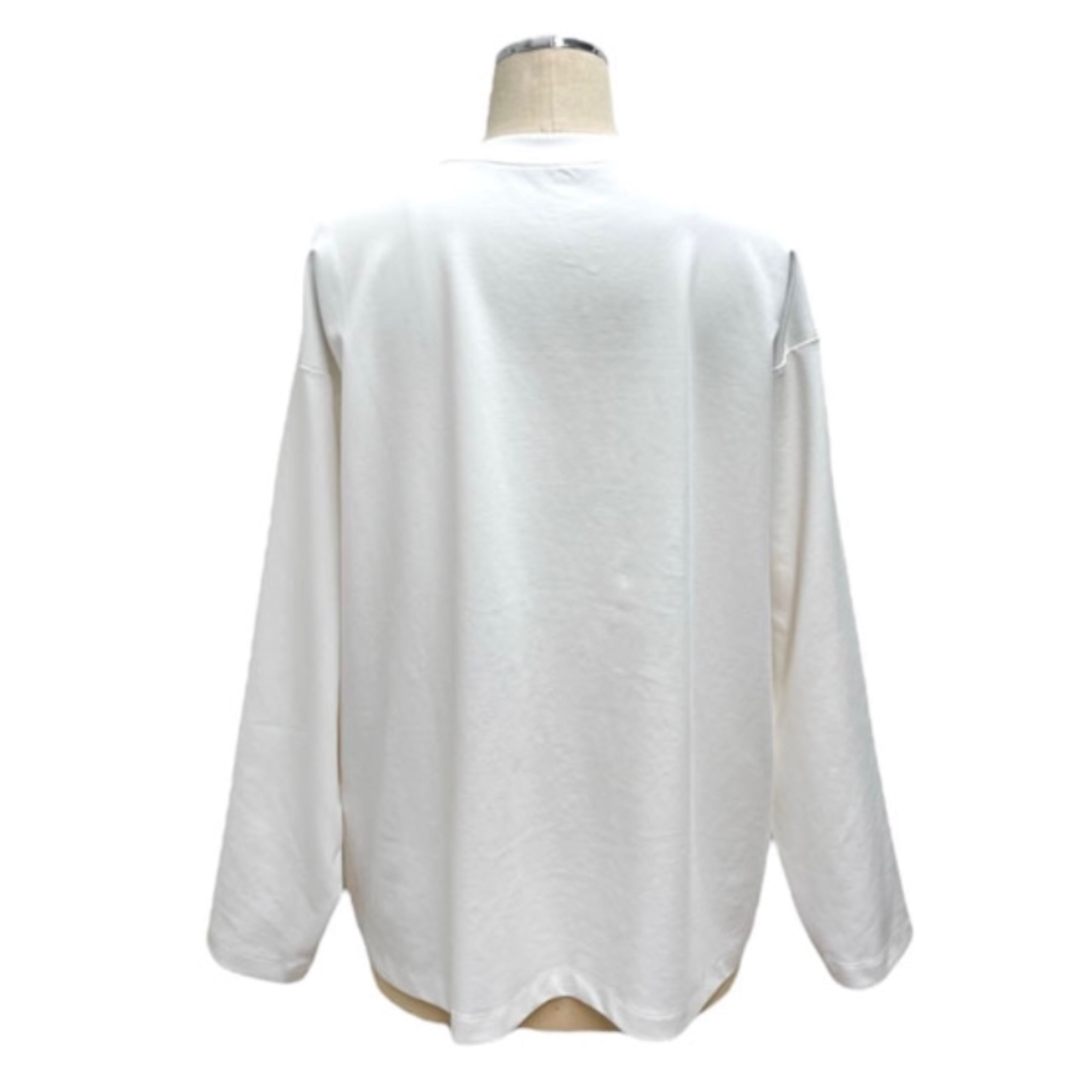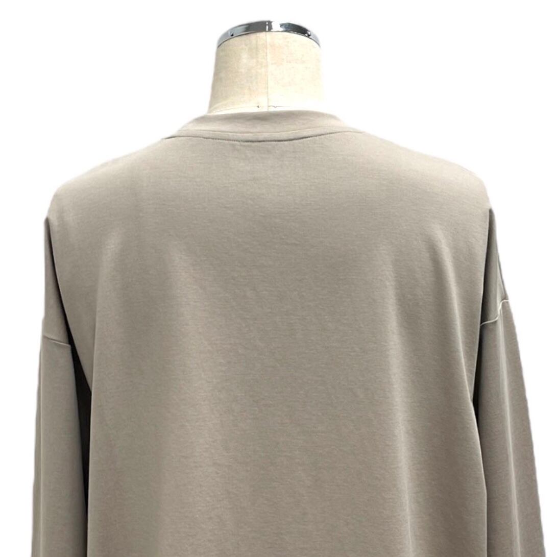 とても肌触りの良いポンチ素材を使用。シンプルなデザインですが、ほとんどのアイテムと組み合わせていただける超優秀なアイテムです。サイズ感といい、箔プリントの存在感といい、とても着用しやすいバランスの完成度の高いロンTです。