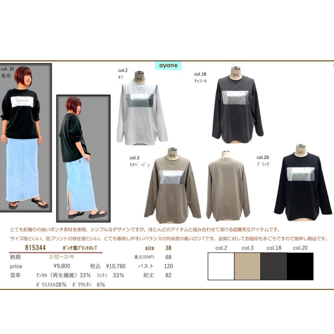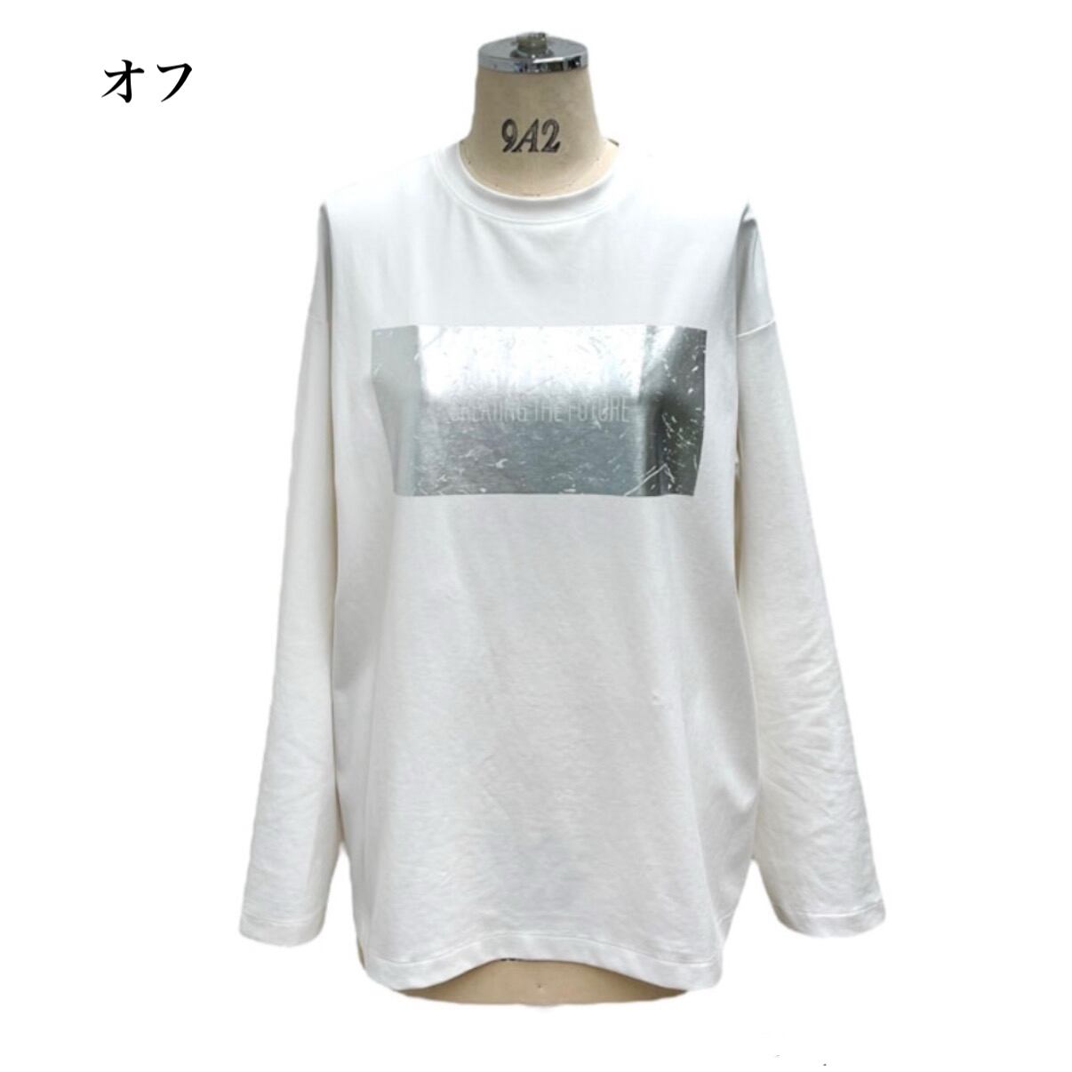 【ayane】アヤン 815344 ポンチ 箔 プリント ロゴ ロンT プルオーバー レディース ブランド プルオーバー ロゴ お尻が隠れる 長袖 ゆったり サイズ 大きい
