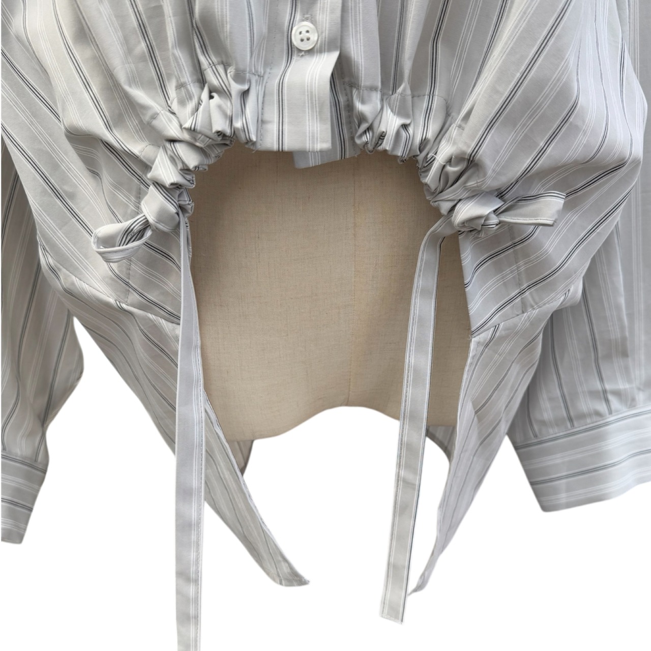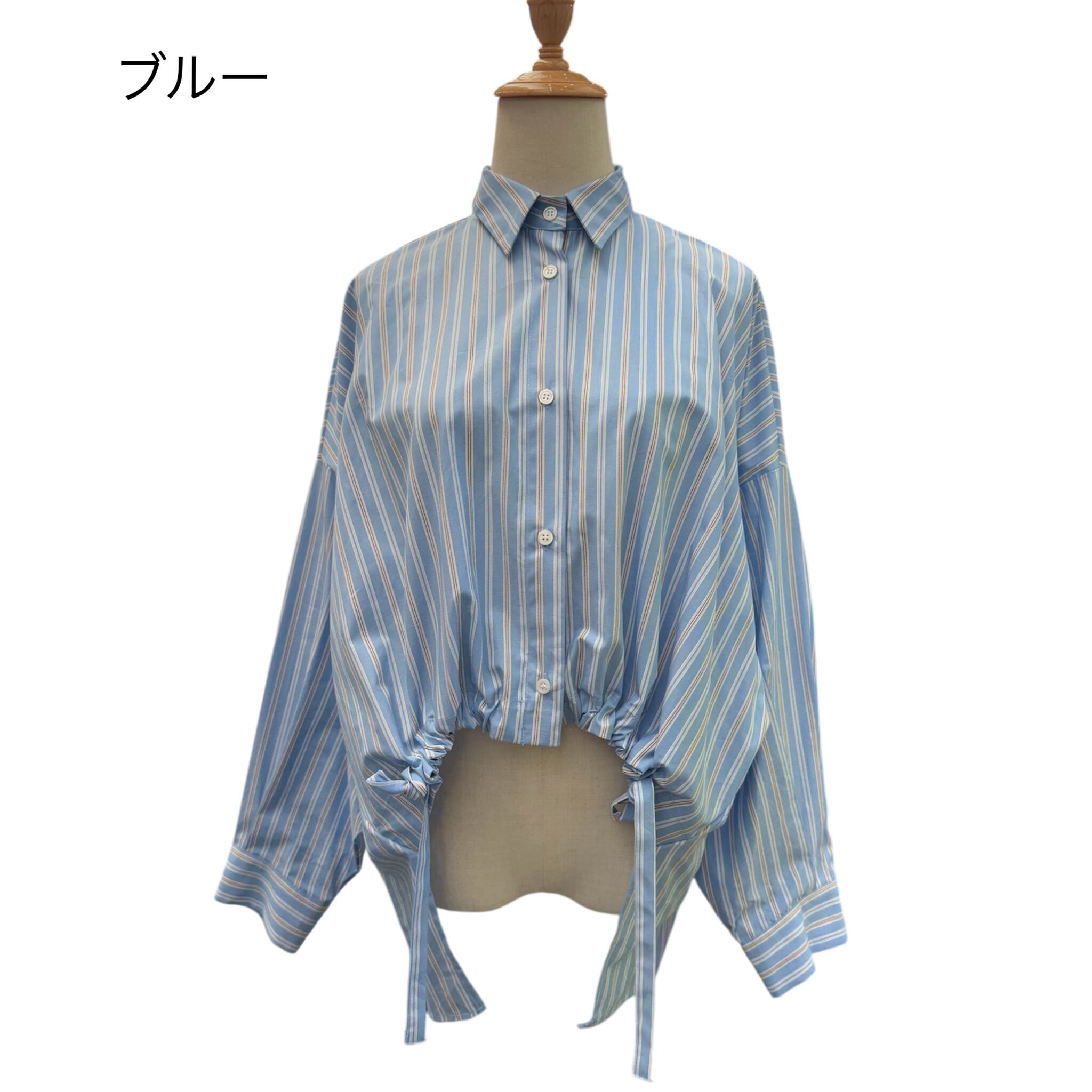 【SEVEN SENSE】セブンセンス 1250311 ストライプ アーチヘム ブラウス レディース ブランド トップス シャツ ブラウス ドロスト お尻が隠れる 綿 コットン 長袖 ゆったり フリー サイズ 大きい
