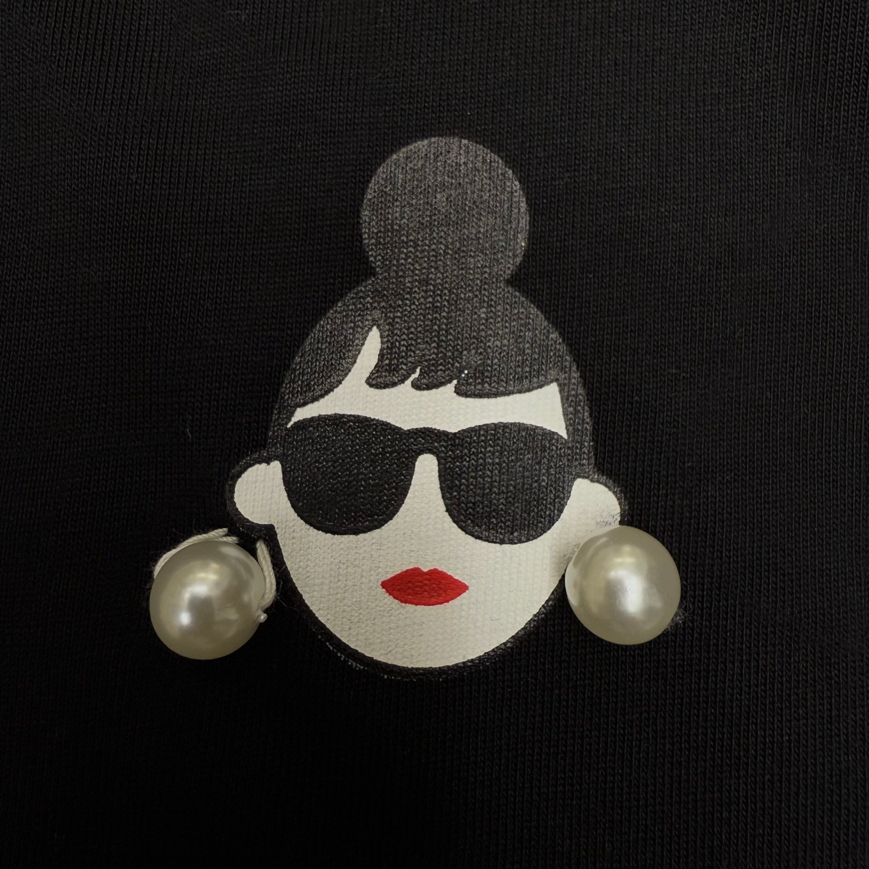 【HAPPY FACE】ハッピーフェイス EM-016 エマちゃん プリント Tシャツ 半袖 パール ピアス レディースレディース ブランド