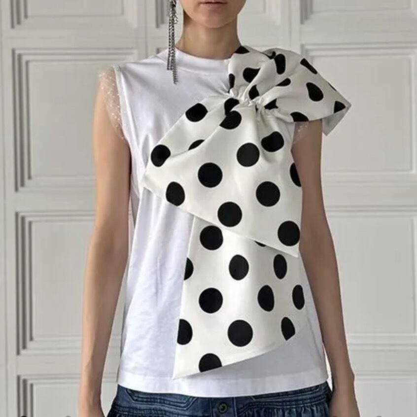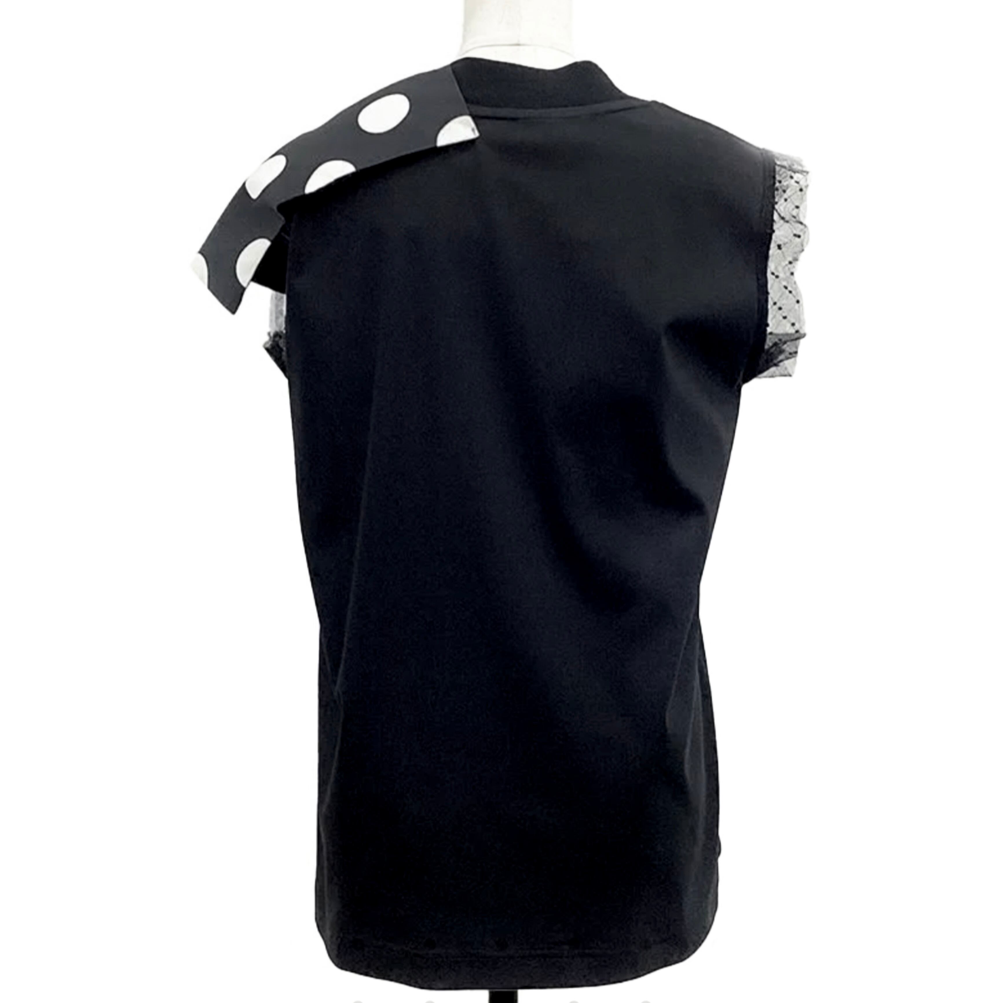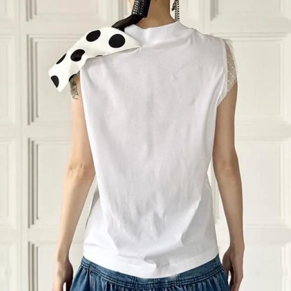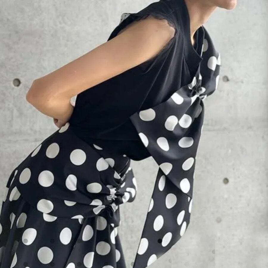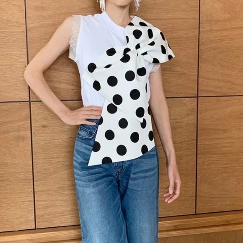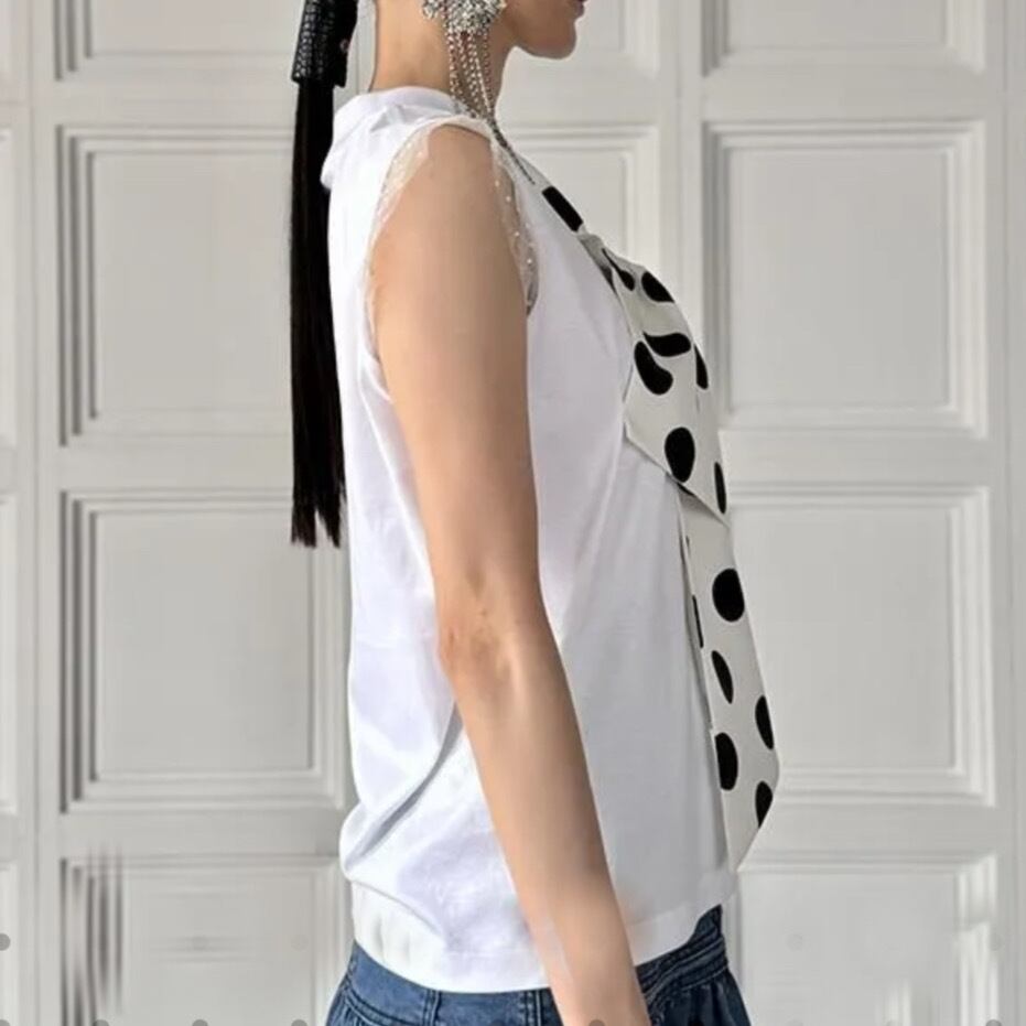 ドット 大きいリボン 完売商品 可愛い かわいい カジュアル キレイめ ブラウス プルオーバー インパクト モチーフ 綺麗目 30代 40代 50代 20代 リボン ビッグリボン レース ヒラヒラ チュール タンクトップ タンク