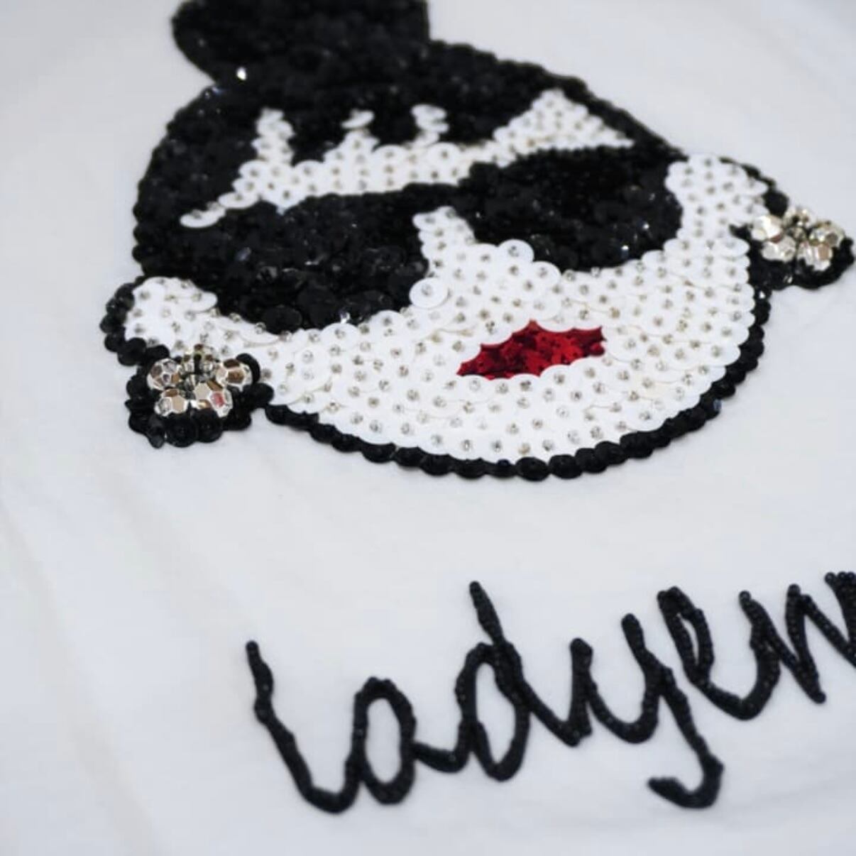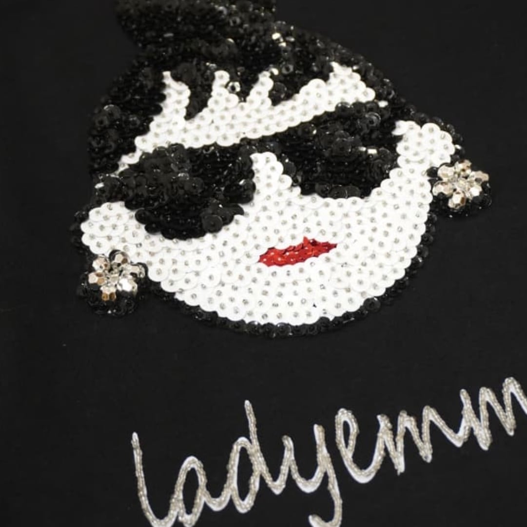【INDIMARK】【HAPPYFACE】インディマーク ハッピーフェイス レディーエマ エマちゃん エマ Tシャツ ビジュー スパンコール ビーズ フェイス 顔 レディース ブランド 白 黒