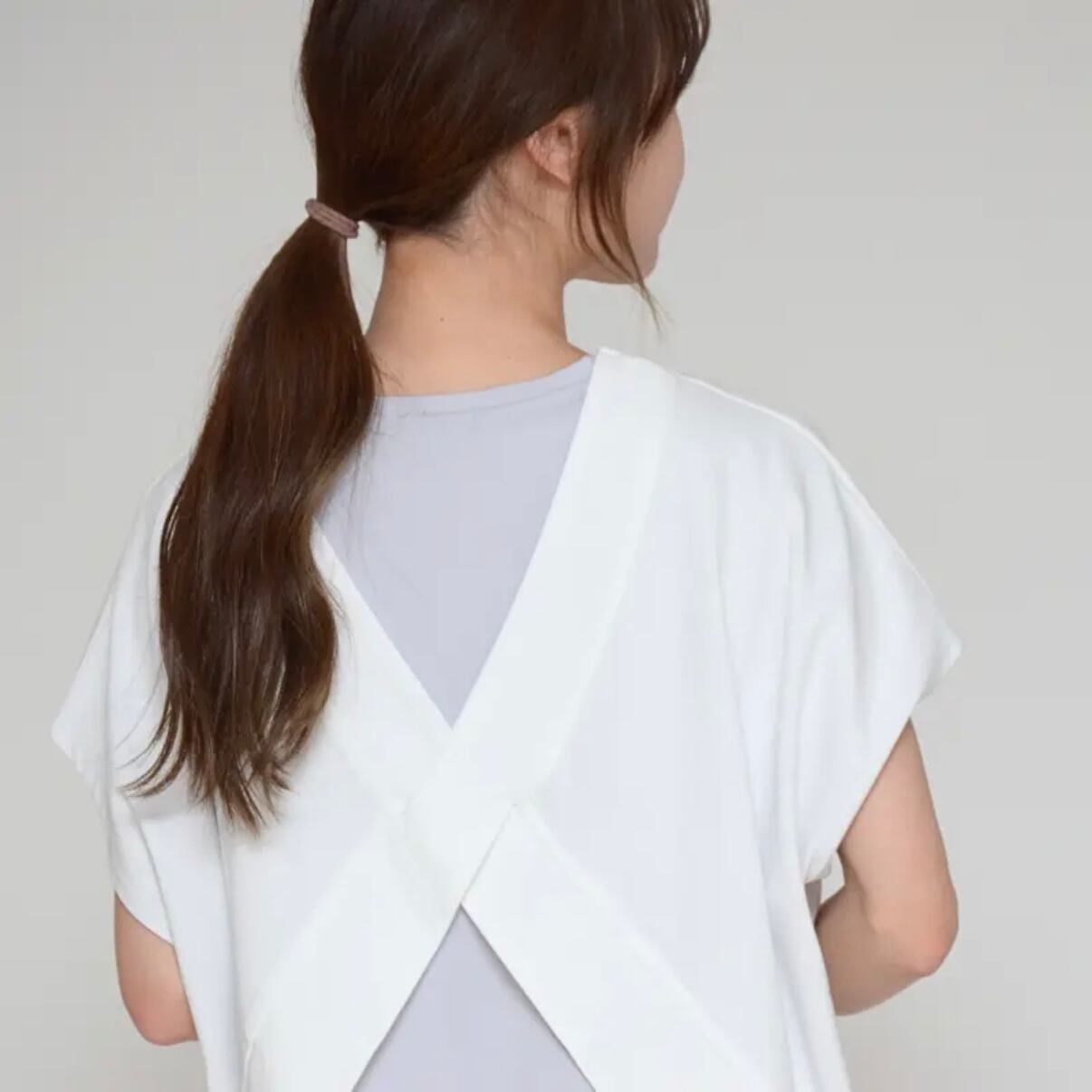 後ろ姿にさりげないアクセントを加える、バッククロスデザイン。