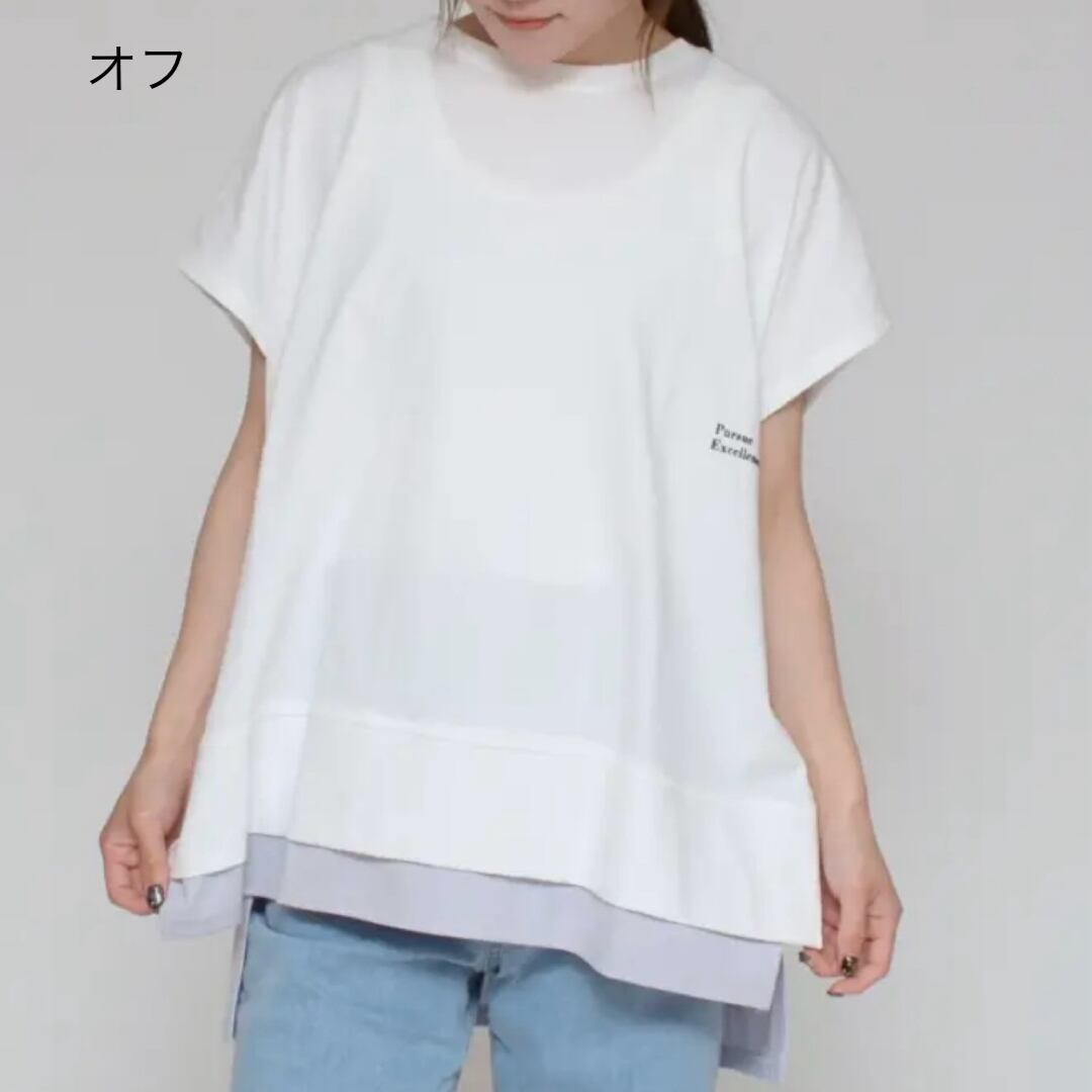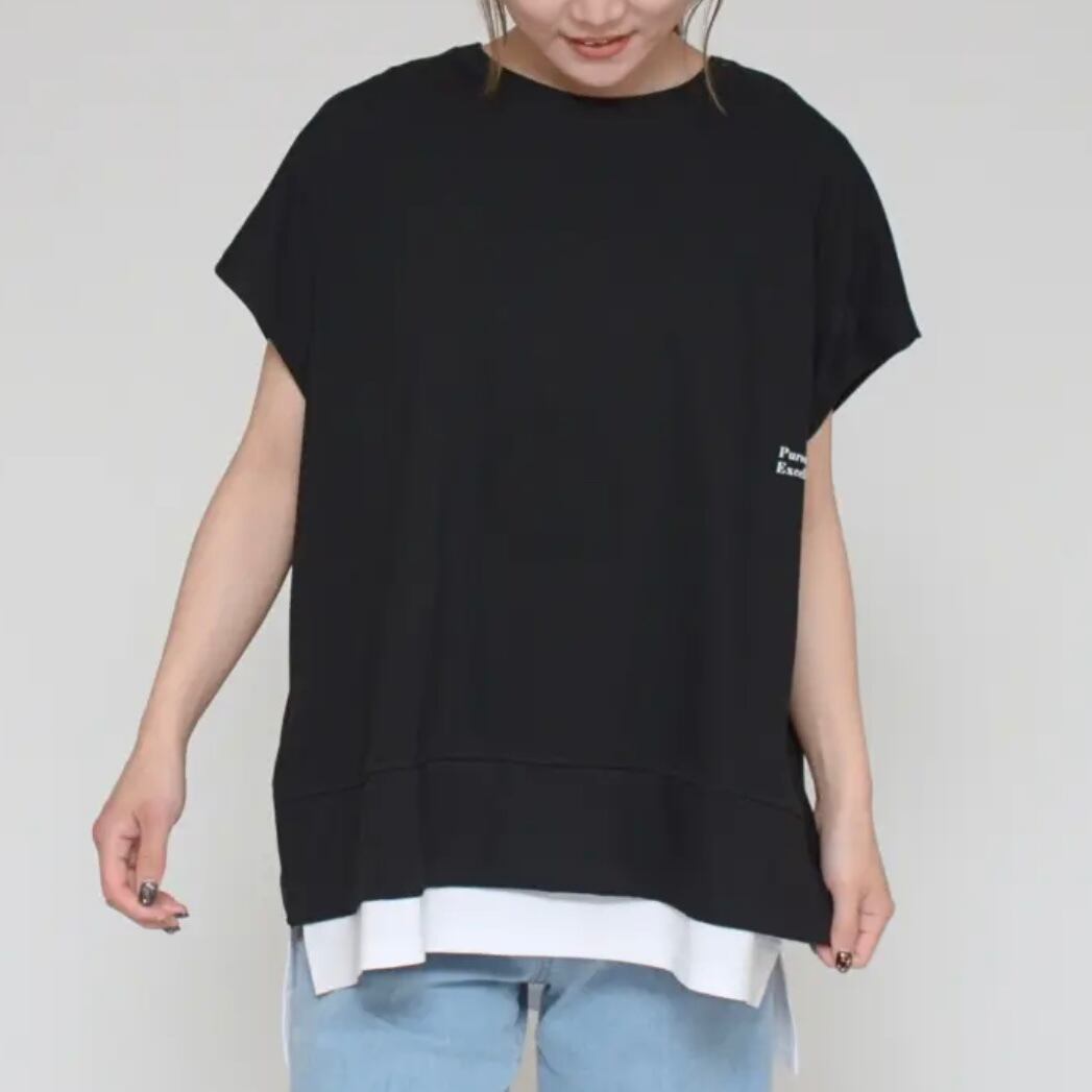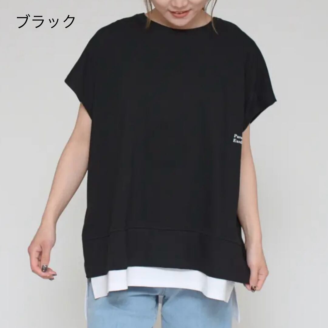 【Praia】プライア LER-2155B 一枚でレイヤードスタイル バッククロス ドッキング デザイン トップス Tシャツ 半袖 袖付き レディース ブランド 涼しい 夏