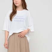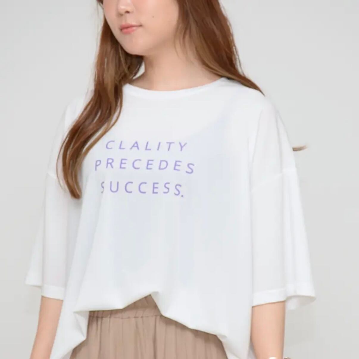 【Praia】プライア LER-2368B 梨地素材 カラー ロゴ プリント Tシャツ ブラウス シャツ デザイン トップス Tシャツ 半袖 袖付き レディース ブランド 涼しい 夏