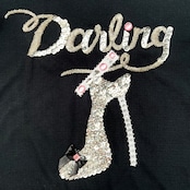 ハイヒールモチーフのロゴがアクセントになり、カジュアルながらも特別なシーンにぴったりなトップスです。