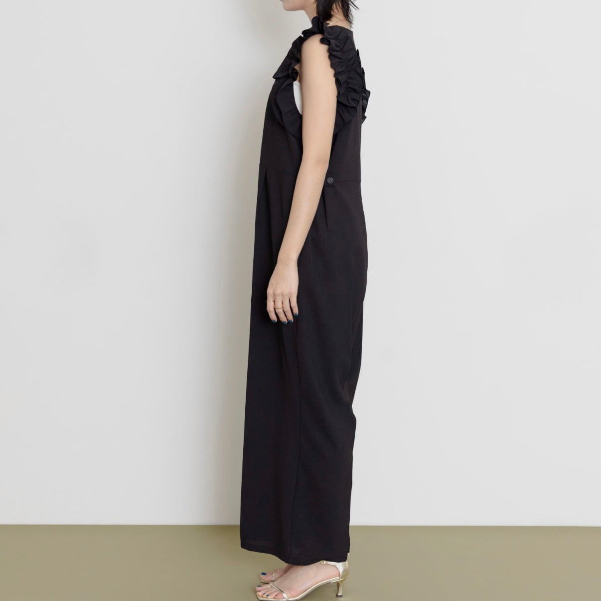 【Eimee Law】エイミーロウ 84243M フリル ショルダー Uネック オールインワン レディース ブランド 黒