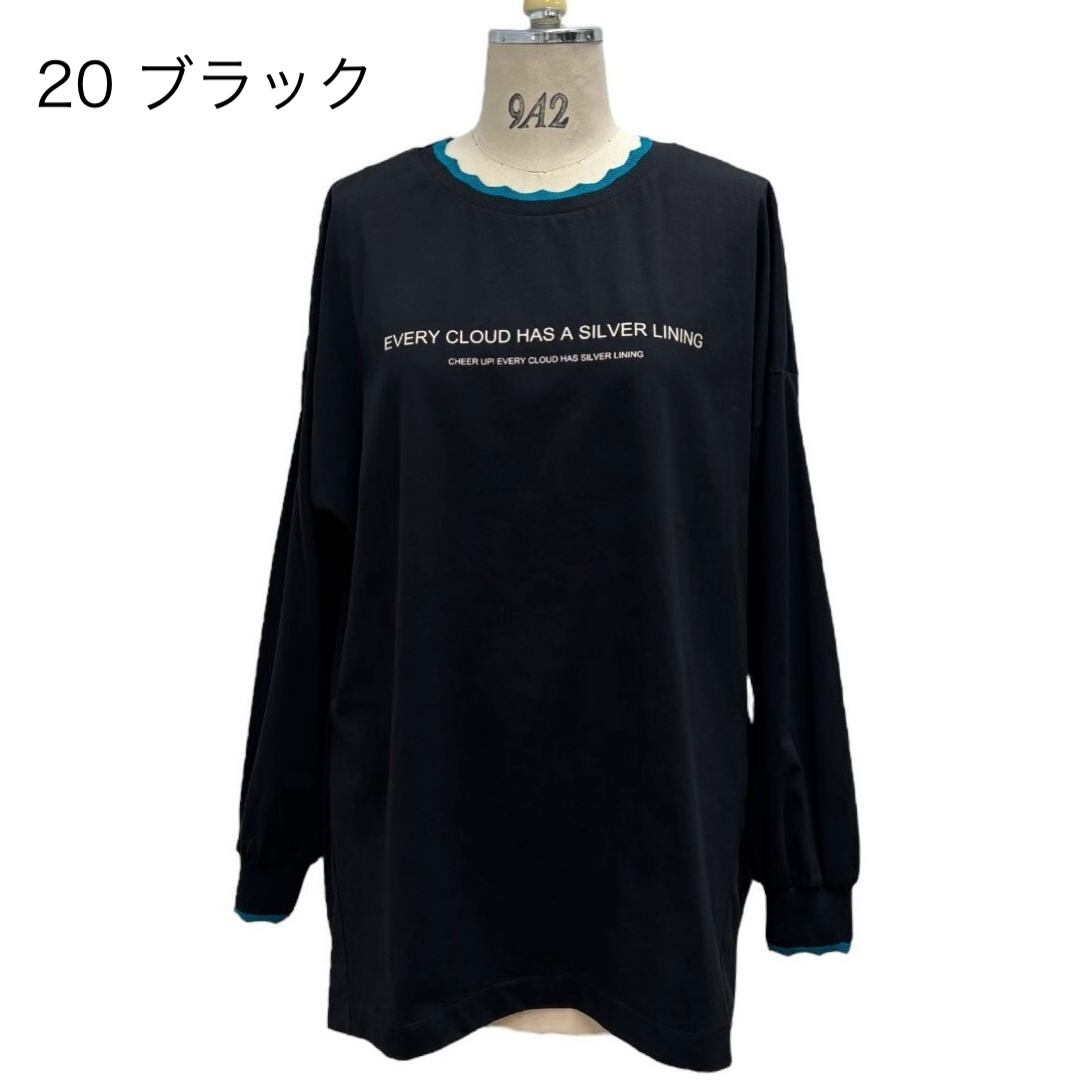 【ayane】アヤン 816308 襟ぐりニットロゴロンT レディーストップス ブランド Tシャツ 長袖 カットソー 異素材