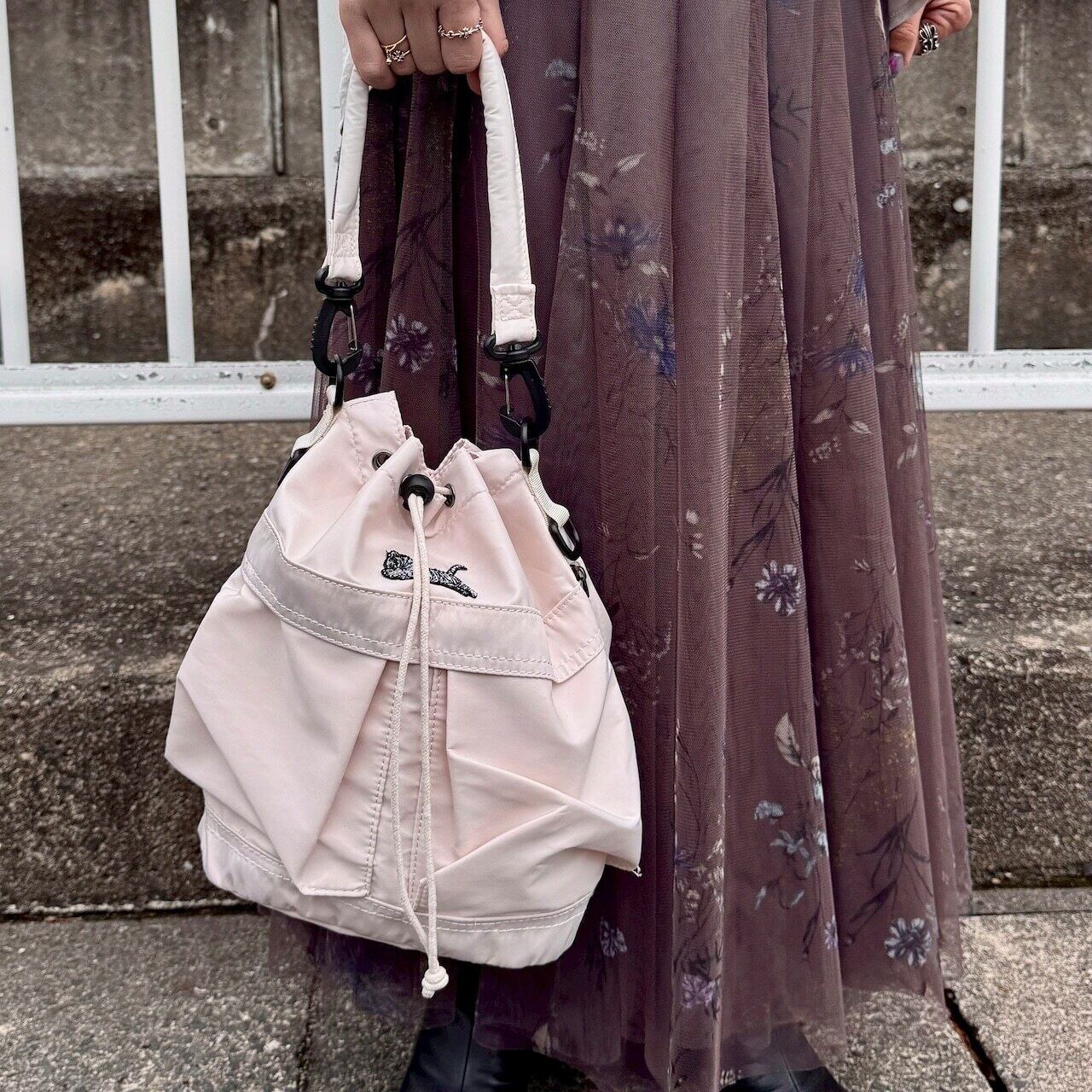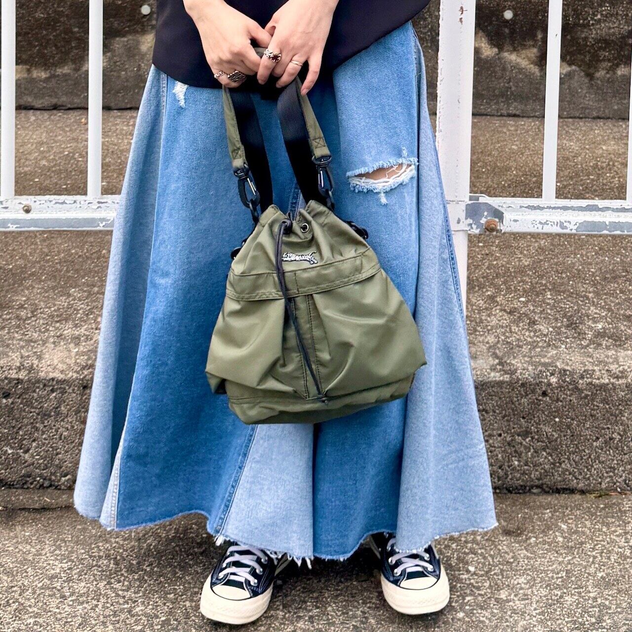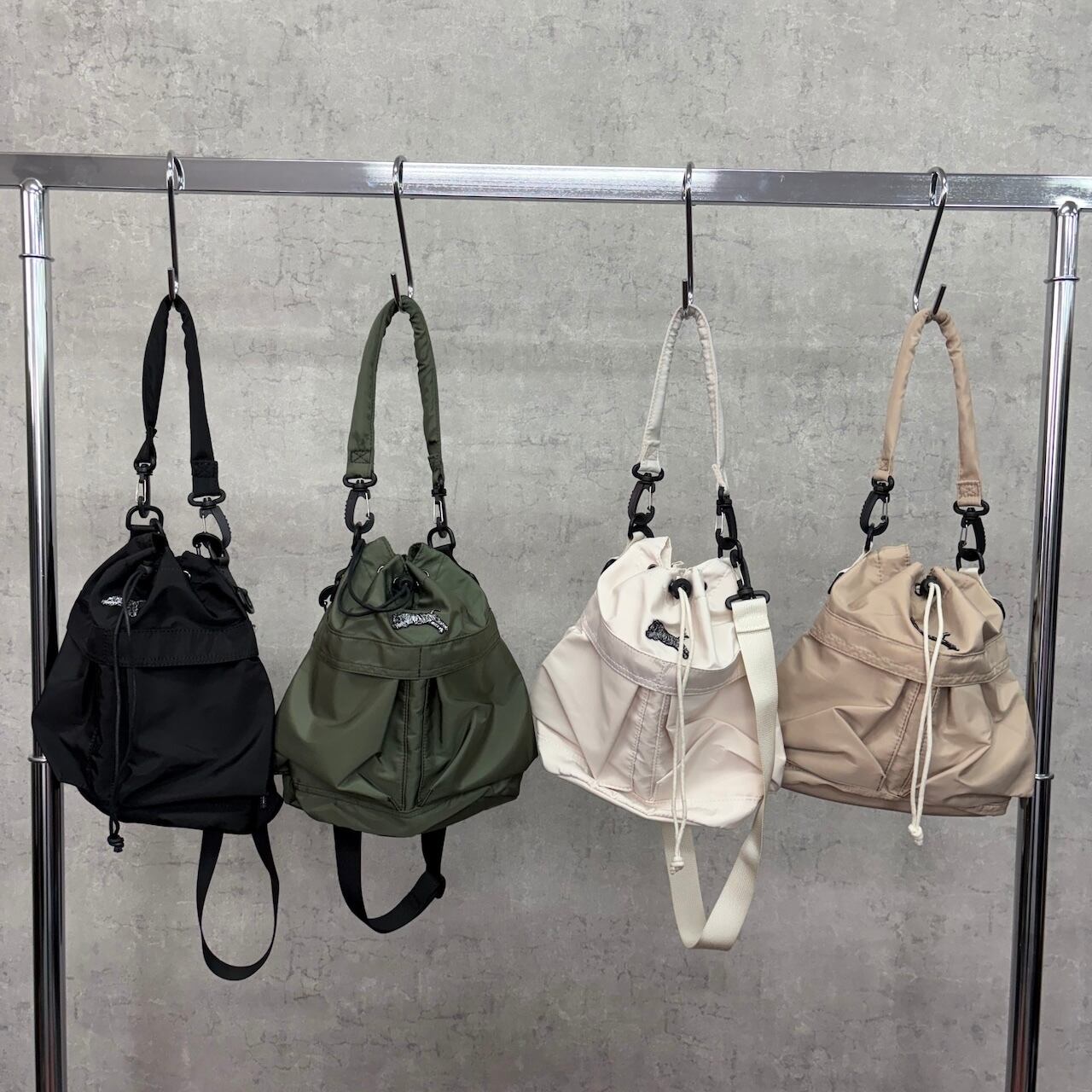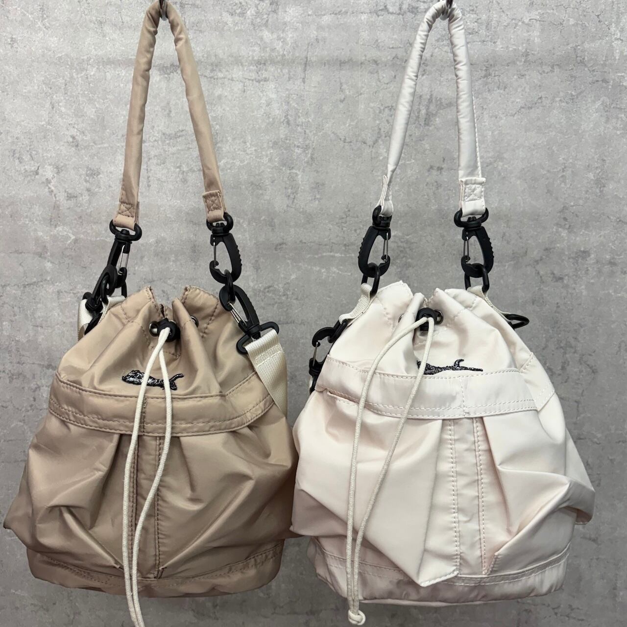軽量ナイロン製の魅力的な2way 巾着バッグ。