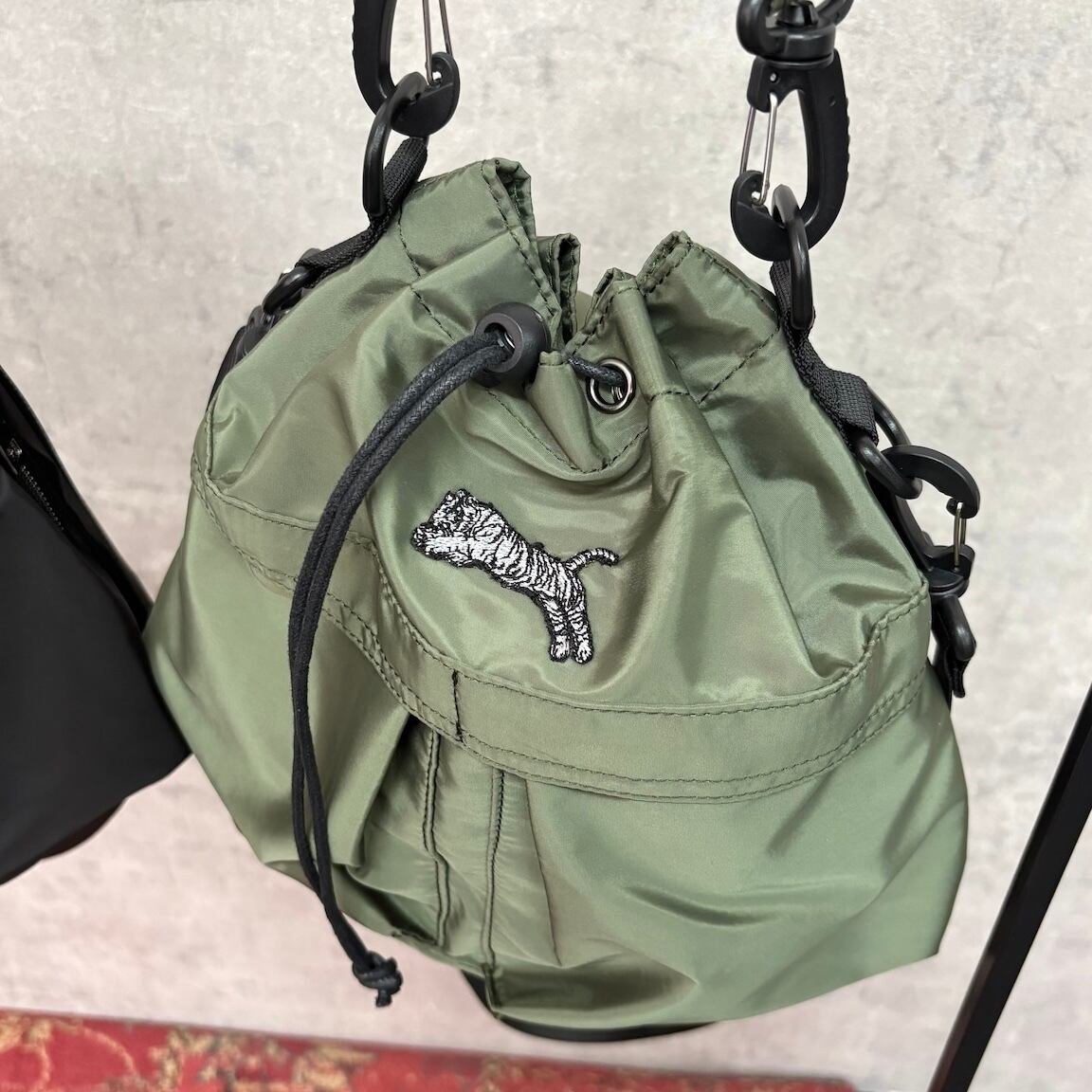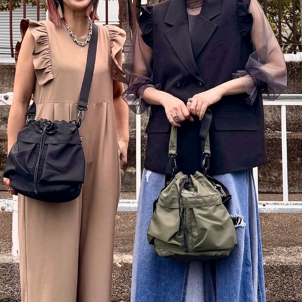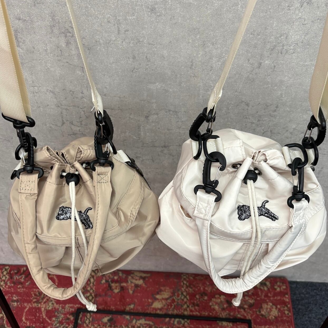 巾着のデザインは使い勝手も良く、シンプルながらもオシャレに決まる一品。